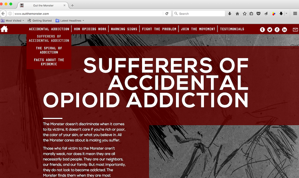 “Out The Monster” is a chilling film and website focused on fighting accidental addiction to opioids. I helped produce the film and the website which won a Gold Lion at Cannes.